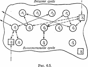 обрели самостоятельность, и возникла структура, показанная на рис. 6.5 В этой структуре сегрегациогенез зашел настолько далеко, что отдельные подсистемы автономно не могут существовать. Лишь объединившись в структуру, где обязательно наличие одного управляющего блока и хотя бы одного обменного устройства, связанного с процессорами или запоминающими устройствами, наш «организм» сможет функционировать. Способность образовывать структуры под задачи демонстрирует его адаптационные возможности, а специализация отдельных подсистем позволяет реализовать связанные с ними функции параллельно и максимально быстро. Анализируя прогресс в