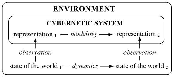Fig. 1. Modeling scheme. The modeling scheme shown on the figure is a representation of relation between dynamics of the world and internal modeling in system. The first representation that is some internal state of the cybernetic system used to generate prediction. This calculated prediction is new representation, which expected to correlate with the future state of the world. Modeling is used to choose the action that will return representation closest to the desired state after the system put it in the model as an input. Such modeling scheme is rather universal and can be applied almost to every cognition process. Turchin describes this universality in the following way: This definition describes equally well the case of a dog catching in flight a piece of sugar, and an astronomer who computes the position of a planet in the sky. In the first case, the model is built in the material of nervous cells of the dog's brain, in the second case from the signs that the astronomer writes on paper when he makes computations. [12]. In some cases the action chosen through modeling may be empty. It means that system does not perform any action and just observes events in the outside world. But this modeling scheme cannot be applied when observation or modeling processes could affect dynamics of the world. This assumption, which is called non-interference, holds easily for macrosystems but for quantum, social and psychological phenomena it will be more complicated. In these cases model must include description of interrelation between environment and system itself, i.e. be recursive. Generated predictions do not necessarily have to be confirmed by direct observations. Predictions, which cannot be verified directly, may be used in the process of generation of another predictions. So we can see the knowledge as a hierarchical generator of predictions. In the hierarchical generation of knowledge (of models) models on the lower levels are produced from models on the higher levels. The model, which is on a higher level in the hierarchy of generators, is the more abstract one. We can evaluate abstraction in two ways by its scope and level. The wider the area of applicability of predictions generated with the aid of the given model the more abstract it is. The level of abstraction can be defined in the following way: The level of an abstraction is the number of metasystem transitions involved. In the modeling scheme, the subject-of-knowledge system S is a metasystem with respect to the world. Indeed, S controls the world: it takes information from the world as input to create a representation, processes and chooses a certain action a, and executes it at the output, changing thereby the state of the world. The brain of S, as the carrier of world representations, is on the meta-level, a ``meta-world'', so to say. Assigning to the world level 0, we define the abstractions implemented in the brain as abstractions of the first level. [12]. Then the next metasystem emerges for which the first level of abstraction will be represented as the world and then abstractions of the second level appear and so on following complexification of cognizing system. Knowledge can be seen as factual or theoretical according to the level of its abstraction. If the path from a statement to verifiable predictions is short and uncontroversial, we call it factual. A theory is a statement, which can generate a wide scope of predictions, but only through some intermediate steps, such as reasoning, computation, the use of other statements. Thus the path from a theory to predictions may not be unique and often becomes debatable. Between the extreme cases of statements that are clearly facts and those which are clearly theories there is a whole spectrum of intermediate cases. [12]. Turchin derive criteria for theories evaluation out of this, which is equal to critical method of Popper: Since theories usually produce infinite number of predictions, they can not be directly verified. But they can be refuted. For this end it suffices to find one false prediction And we should accept critically both facts and theories, and re-examine them whenever necessary.[12]. Conclusion There is no whole view on the problem of knowledge in the modern philosophy. It is fragmented and often not adequate to the up-to-date scientific worldview. The evolutionary-cybernetic epistemology proposes its own approach to the construction of integrated theory. In its framework the man, as cognizing entity, is seen as the part of the continuing process of the evolution of nature. Through the evolution the living organisms are gaining more and more sophisticated instruments for modeling of processes in the environment. These were single receptors in the beginning then neural network, the brain and after all the human language. People use all these instruments in their purposeful activity. The main criterion of knowledge truth is its utility for the achievement of the certain goal. Knowledge is life. References 1. Campbell D.T. Evolutionary Epistemology. In: Schilpp P.A. (ed) The Philosophy of Karl Popper. Open Court Publish., La Salle, Ill., 1974, pp 413-463. 2. Popper, Karl R. Evolutionary epistemology. In J. W. Pollard (Ed.), Evolutionary theory: Paths into the future, 1984 Chichester: Wiley, (pp. 239-254). 3. Popper, Karl R. Natural selection and the emergence of mind. In Gerard Radnitzky & W. W. Bartley, III. (Eds.), Evolutionary epistemology, theory of rationality, and the sociology of knowledge. La Salle, IL: Open Court, 1987, pp. 137-155 4. Popper, Karl R. The logic of scientific discovery. New York: Basic. 1959 5. Turchin V.F. The Phenomenon of Science, Columbia University Press New York, 1977. http://pespmc1.vub.ac.be/POSBOOK.html 6. Journal of Memetics Evolutionary Models of Information Transmission, http://www.cpm.mmu.ac.uk/jom-emit 7. Heylighen F. Epistemological Constructivism. In: F. Heylighen, C. Joslyn and V. Turchin (editors): Principia Cybernetica Web