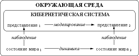 Схема взаимодействия познающей системы с окружающей средой, показанная на рисунке, позволяет наглядно представить, как соотносится динамика процессов во внешнем мире и моделирование, имеющее место внутри системы. Первоначальное представление, являющееся некоторым внутренним состоянием кибернетической системы и связанное с определенным состоянием мира, используется при порождении прогноза, заключающемся в вычислении нового внутреннего состояния соответствующего ожидаемому состоянию мира. Моделирование необходимо для выбора такого действия, которое при подстановке в модель для данного представления дает новое представление наиболее близкое к целевому состоянию системы. Подобная схема моделирования достаточно универсальна и может быть применена практически к любому процессу познания. Вот как охарактеризовал это Турчин: "Это определение одинаково хорошо описывает, как собаку, хватающую на лету кусок сахара, так и астронома, который вычисляет положения планет в небе. В первом случае модель воплощена в клетках мозга собаки, а во втором в знаках, которые астроном пишет на бумаге, когда он выполняет вычисления" [12]. Действие, выбранное в результате моделирования, может быть пустым, это значит, что система не производит никаких действий, а просто наблюдает за развитием событий. Однако область применимости предложенной схемы моделирования ограничена. Подобная схема может применяться лишь в случаях, когда ни процесс наблюдения, ни процесс моделирования не влияет на динамику в окружающем мире. Это допущение невмешательства легко выполняется для макросистем, но при рассмотрении квантовых явлений уже нельзя считать процесс наблюдения не влияющим на результат. То же можно сказать и в отношении социальных наук или психологического самоанализа. В этих случаях модель должна включать в себя также отношения между самой системой и средой, то есть быть рекурсивной. Предсказания, порождаемые при помощи знания, не обязательно должны быть проверяемы непосредственными наблюдениями. Предсказания, не имеющие возможности непосредственной проверки, могут использоваться при получении проверяемого прогноза на следующем шаге моделирования или через несколько шагов. Кроме того, некоторые знания могут использоваться для порождения других знаний, то есть некоторая модель может порождать другие модели, некоторые из которых будут использованы для непосредственного получения результатов, а некоторые - для дальнейшей генерации новых моделей. Таким образом, знание можно рассматривать, как иерархический генератор предсказаний. При иерархической генерации знаний (моделей) модели нижних уровней порождаются моделями верхних уровней. Чем выше в иерархии знаний находится модель, тем большей абстрактностью она обладает. Степень абстракции можно оценить по двум параметрам - области и уровню. Абстракция тем выше, чем шире область явлений, для которых предсказания данной модели верны. Уровень абстракции можно определить следующим образом: "Уровень абстракции - это число пройденных метасистемных переходов. В схеме моделирования субъект знания система S является метасистемой по отношению к окружающему миру. Действительно, S управляет миром - она получает на входе информацию из мира, создает представления, производит выбор действия a, и вып